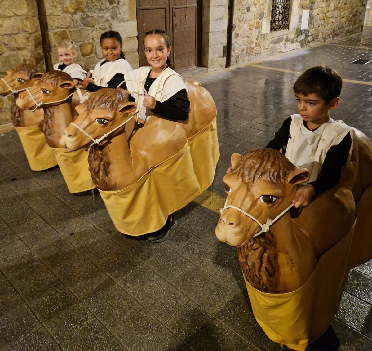 Seguint amb la línia de figures egipcies perquè complementéssin la parella de gegants, vam coincidir que uns camells serien molt adients. Ara, amb aquestes quatre noves figures, els petits ja podran trotar per les cercaviles acompanyant la faràndula de la vila.