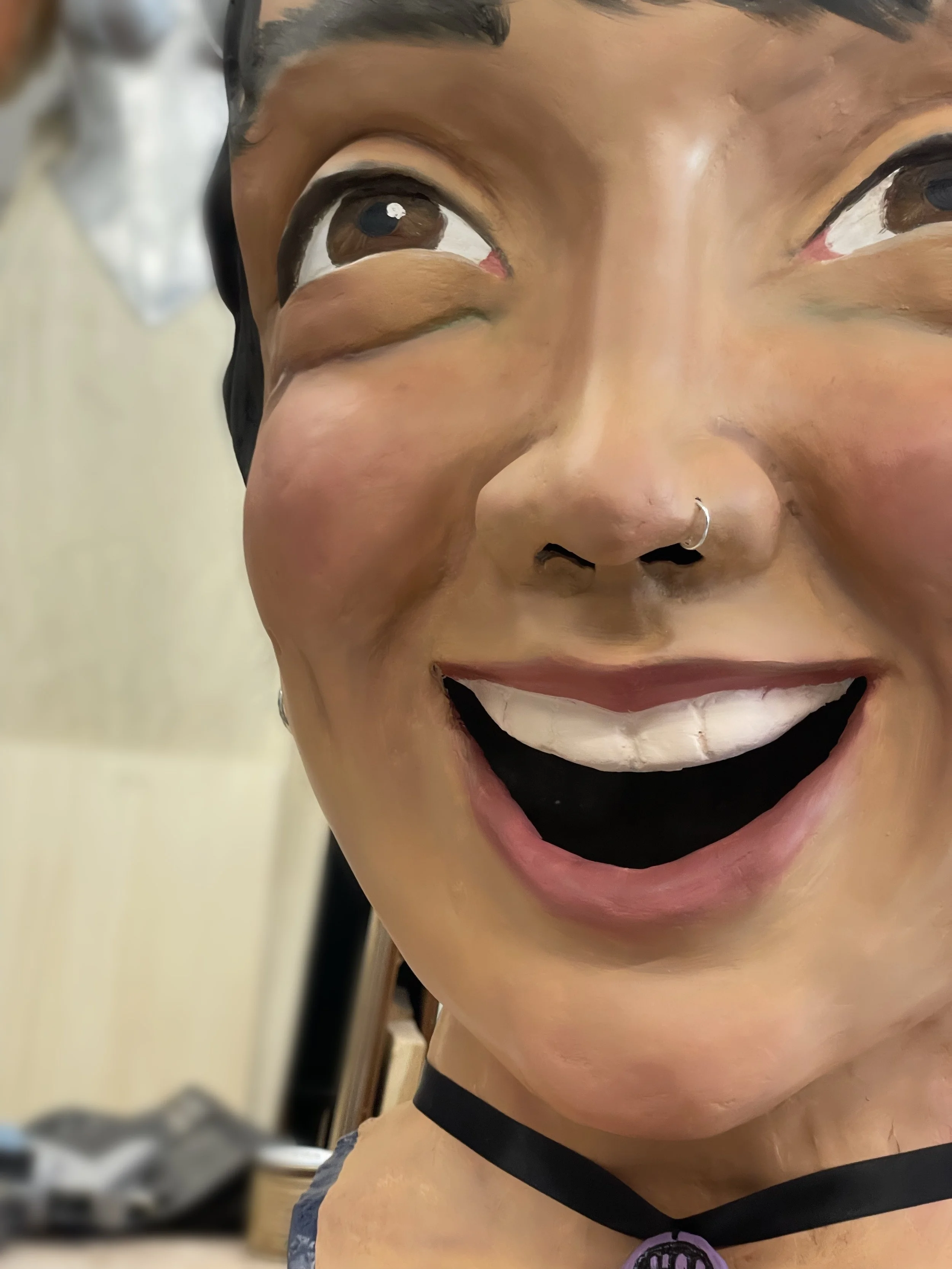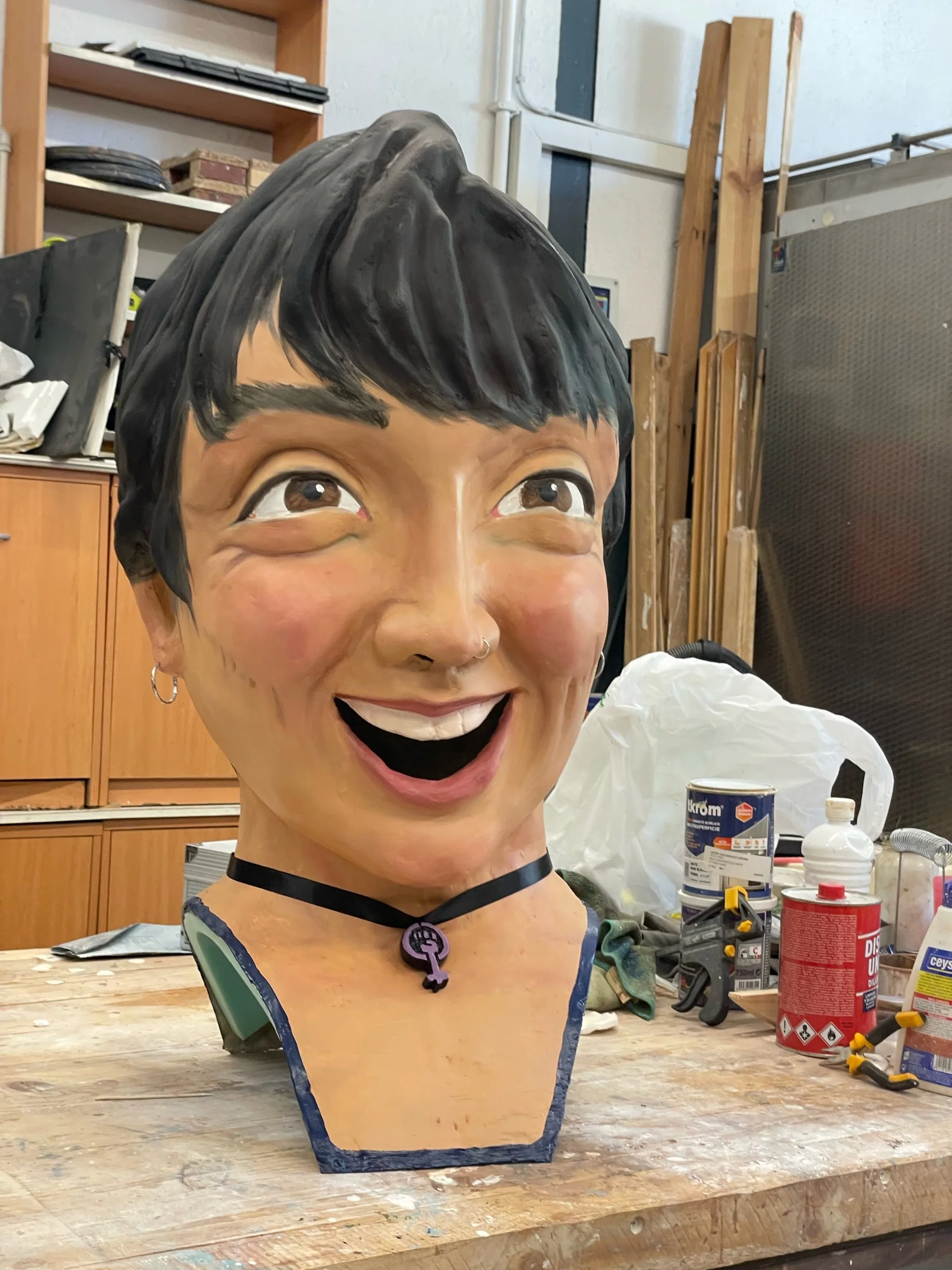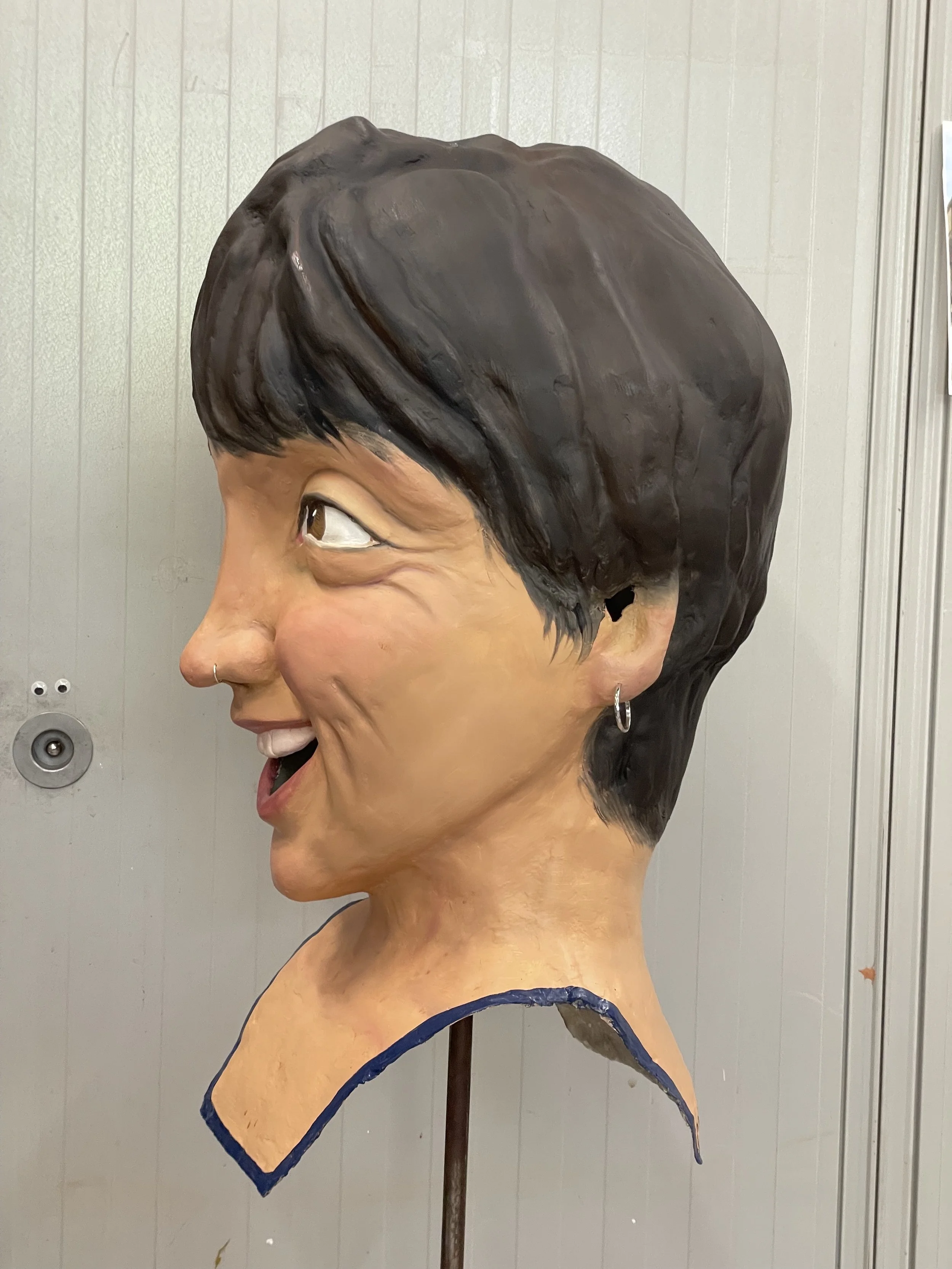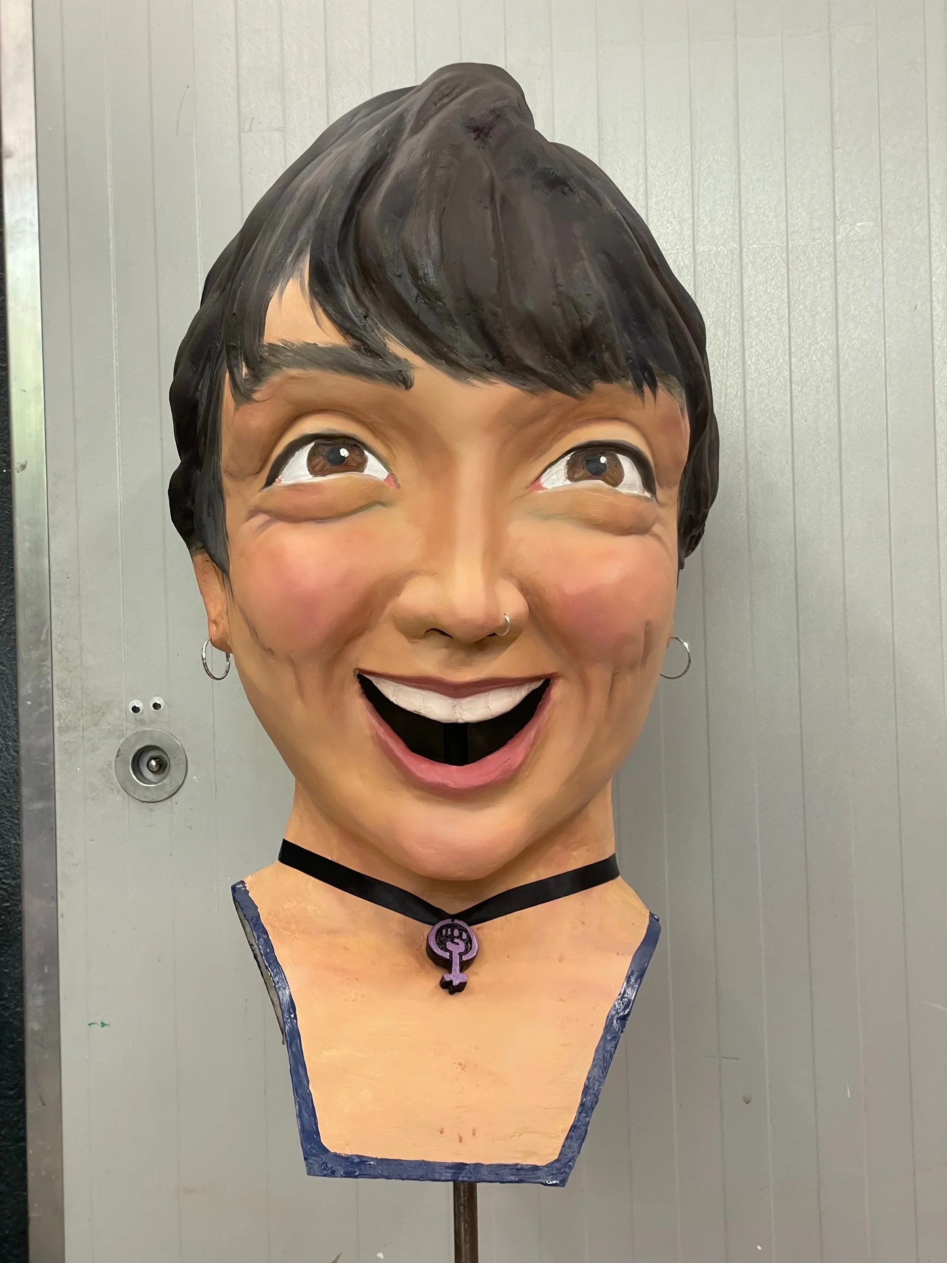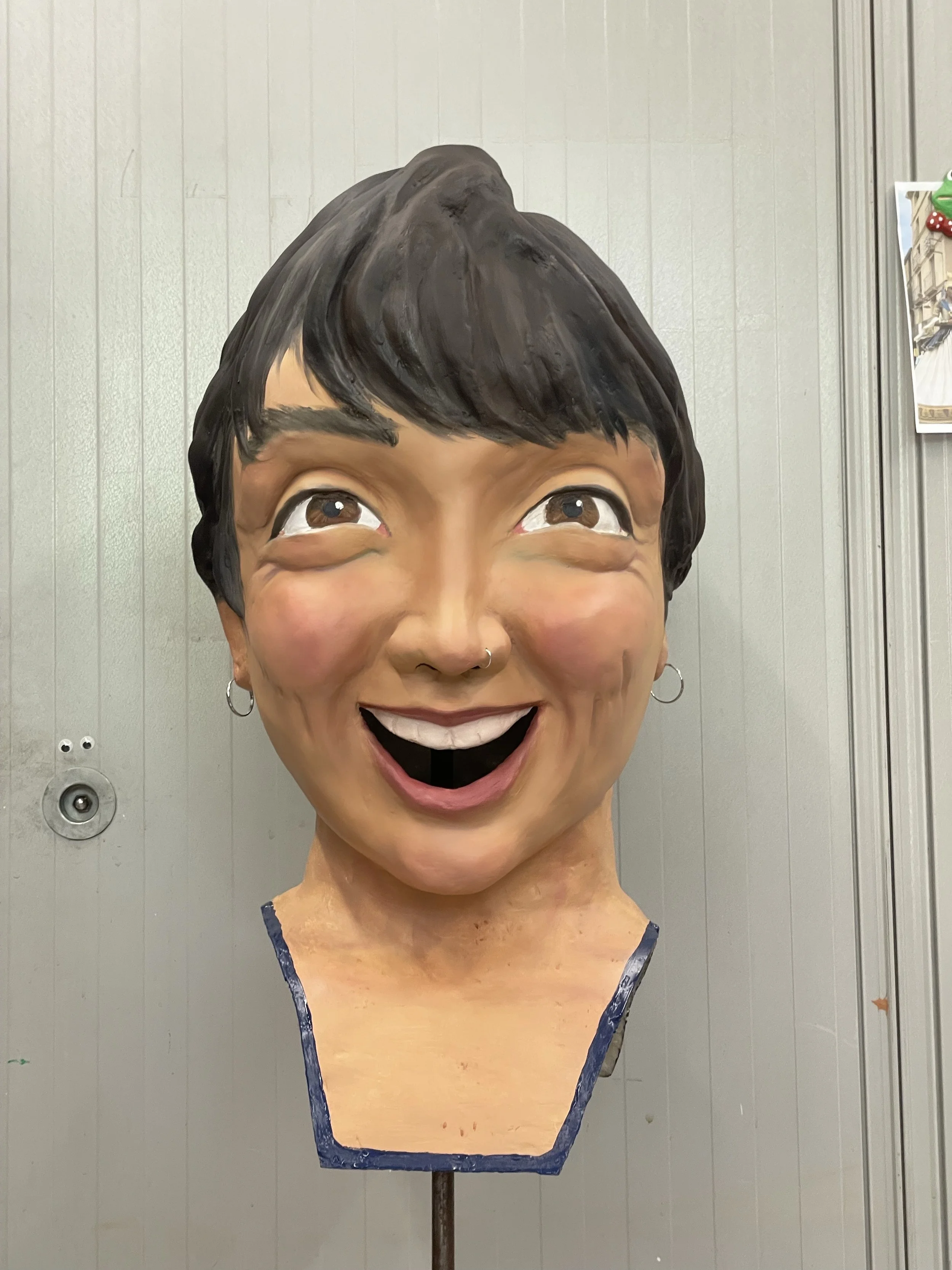 Aquest és un capgròs retrat d’una mestra de l’Escola Lola Anglada d’Esplugues de Llobregat que els va deixar el passat mes de març i per això van decidir crear-li un capgròs en homenatge.