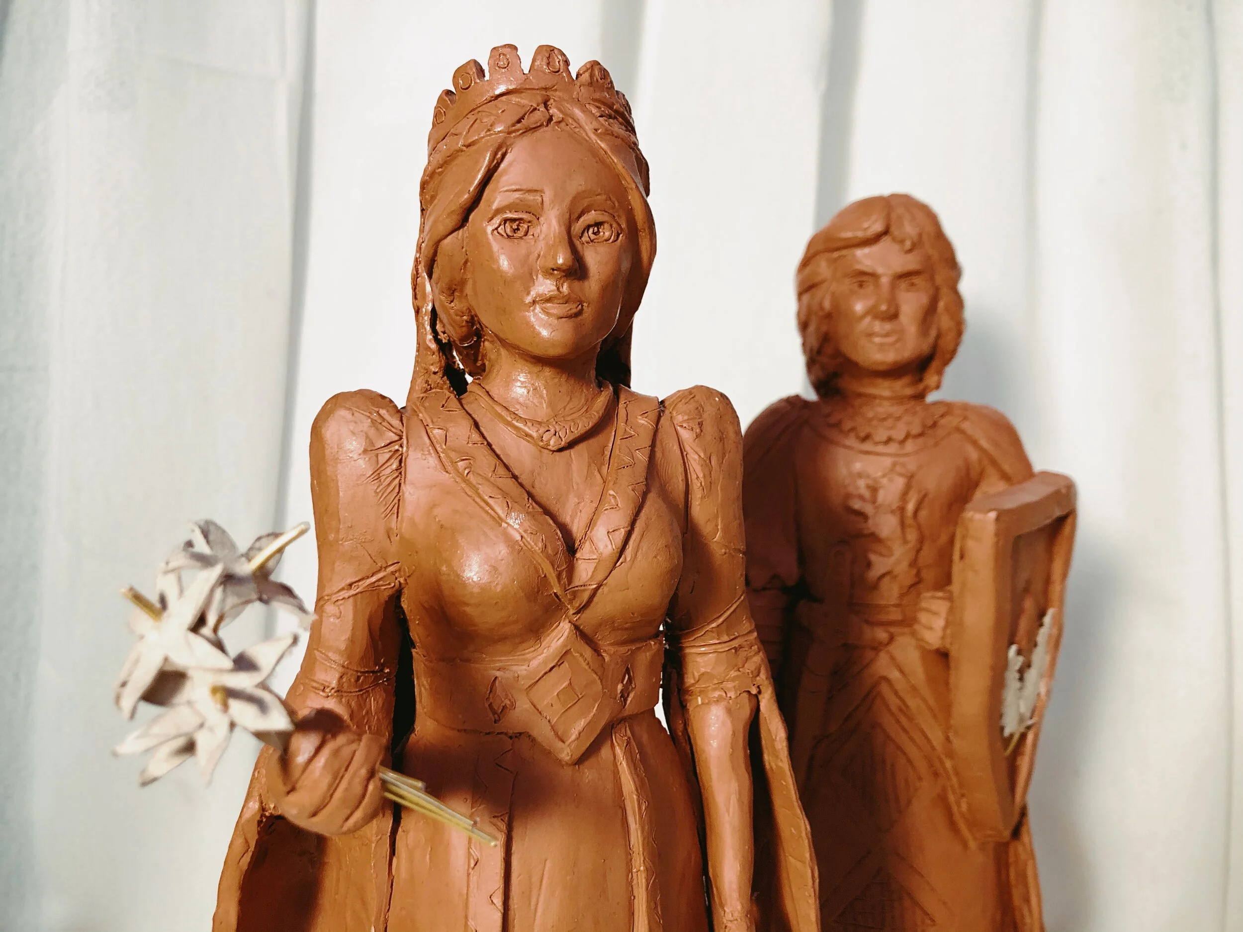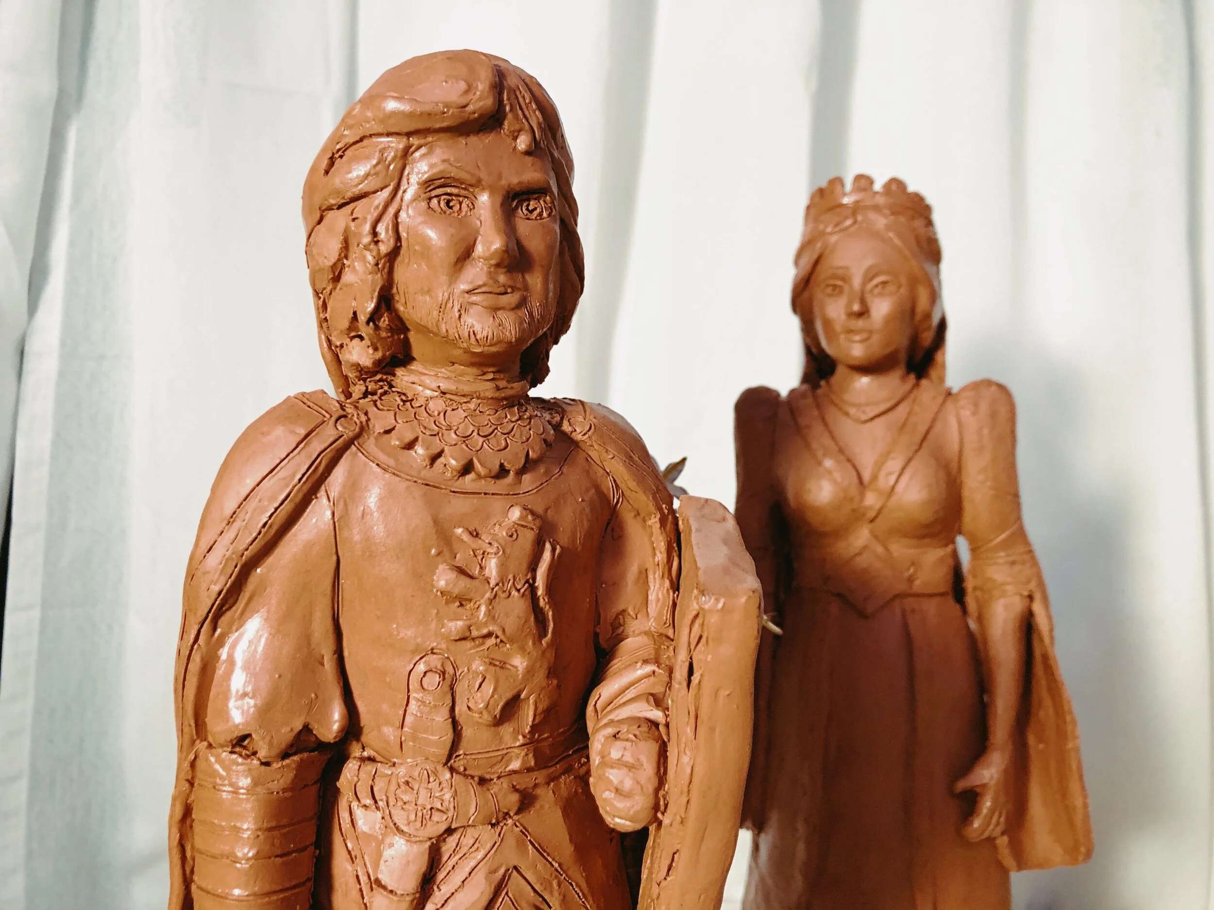 Figures de fang de 30 centímetres d’altura amb detalls de cartró pedra.