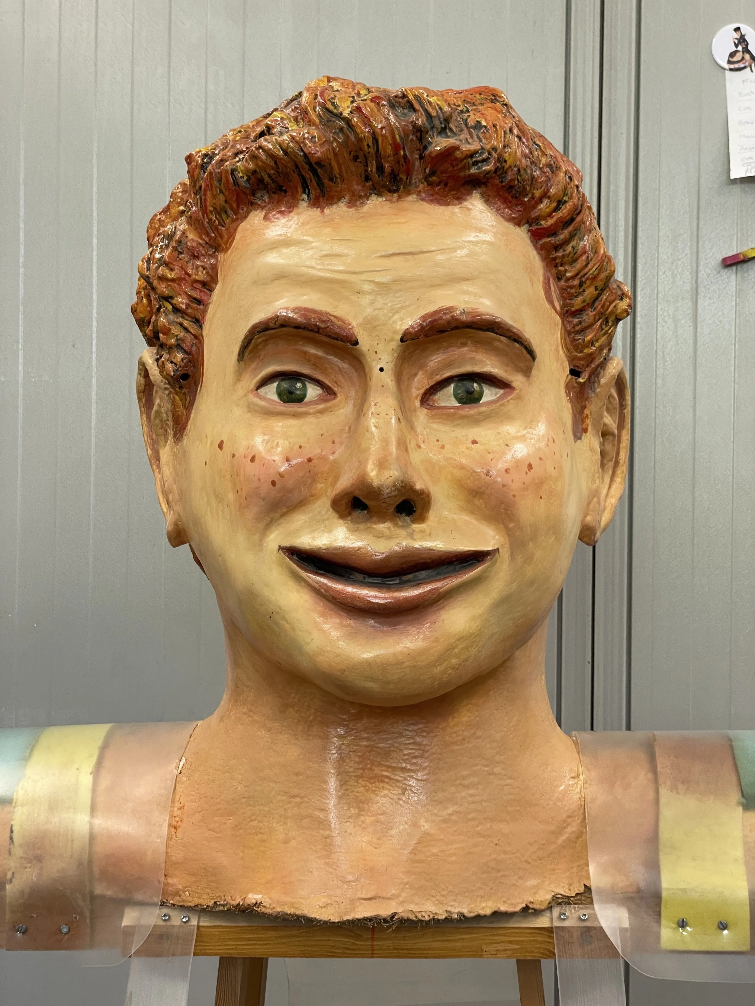 🎨En aquesta restauració se li ha eliminat els afegits que tenia al rostre com als llavis, part de la barbeta i les celles.