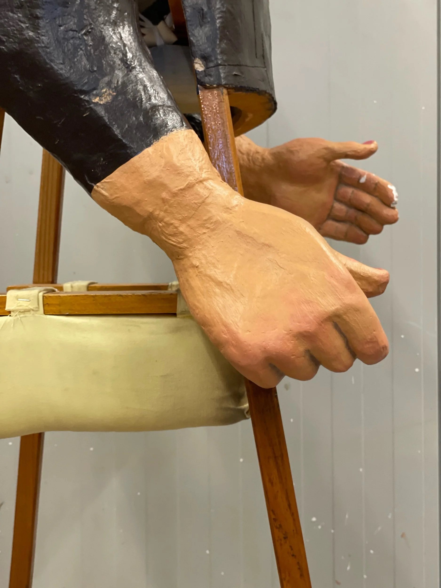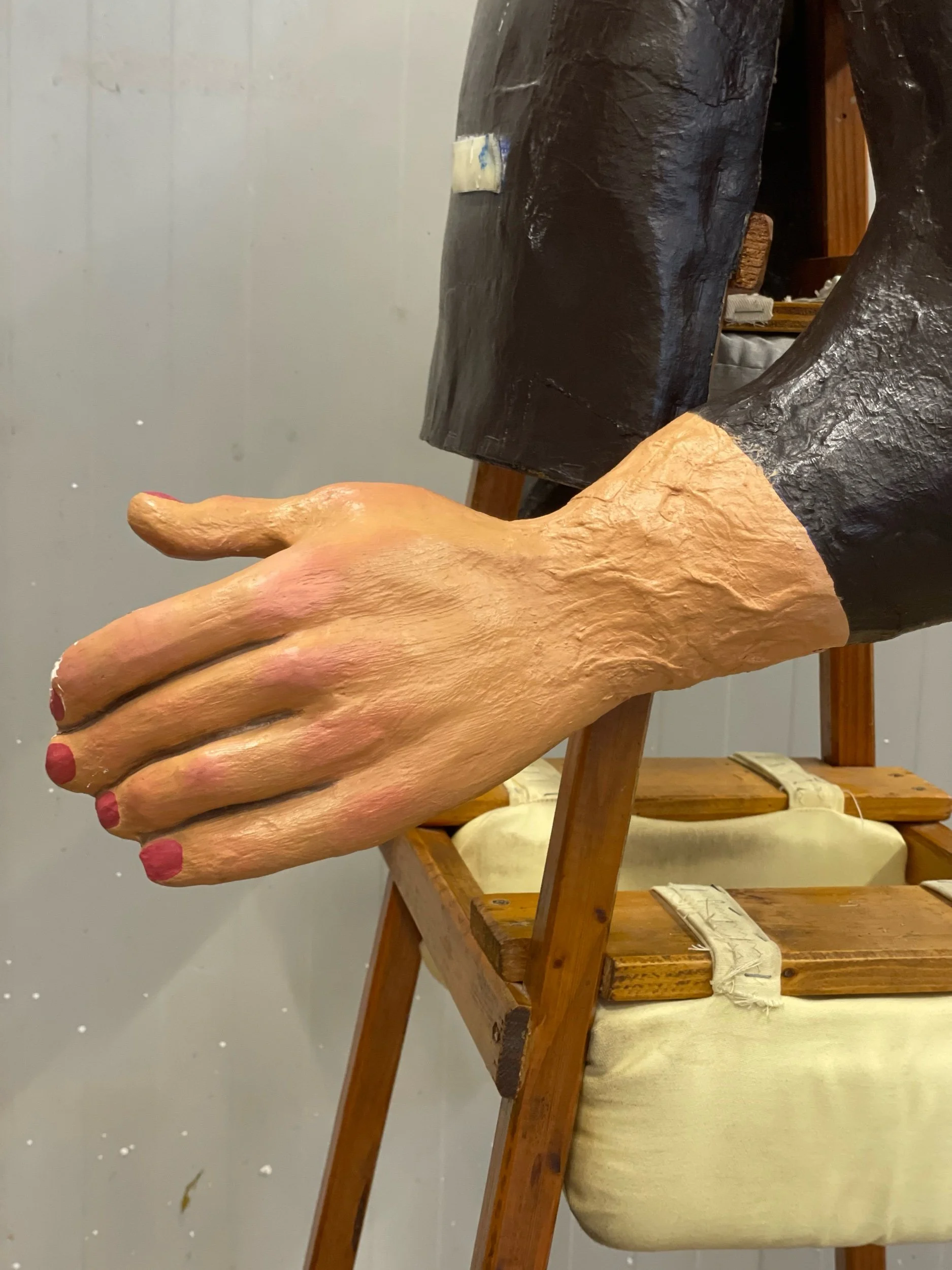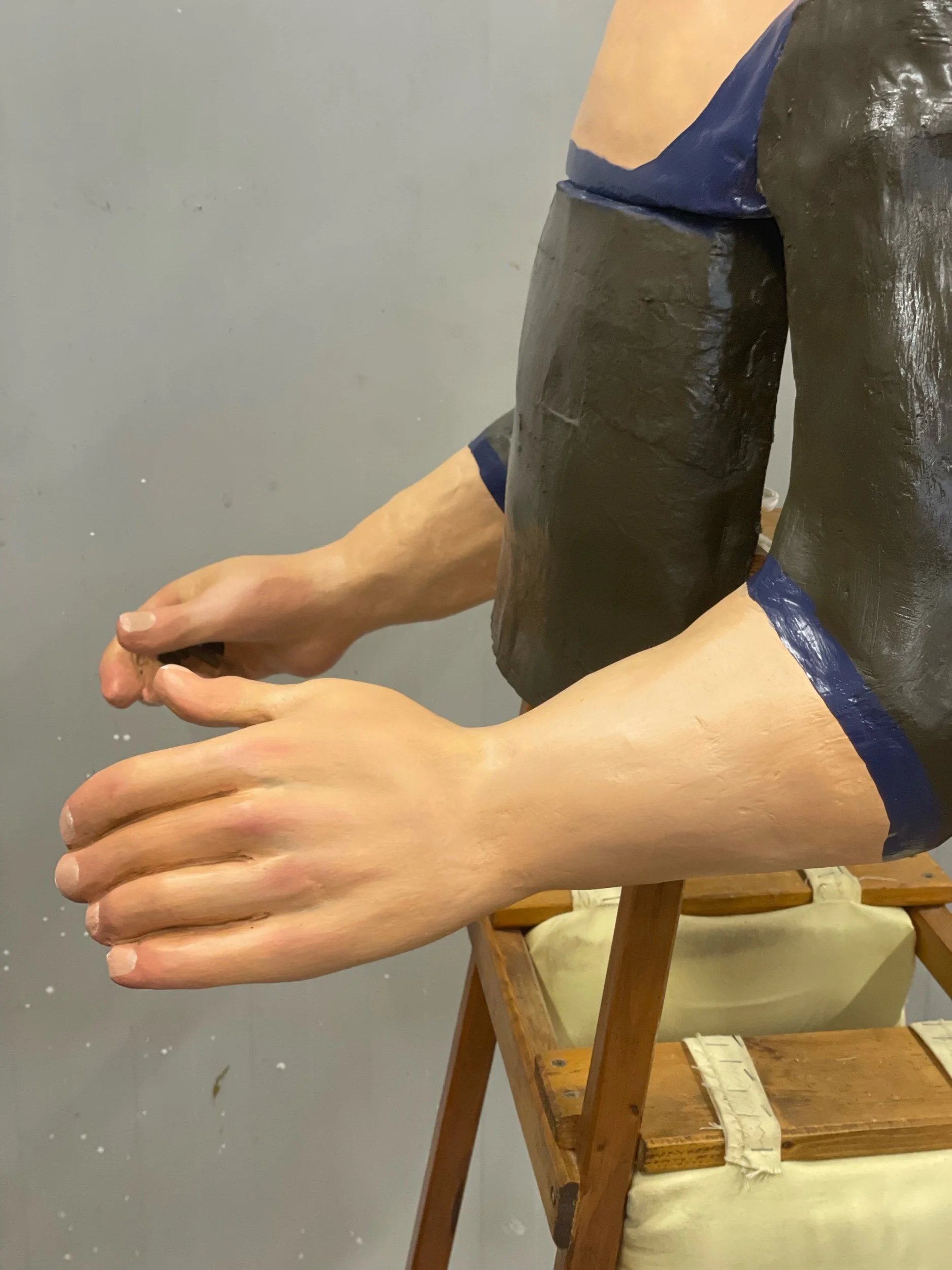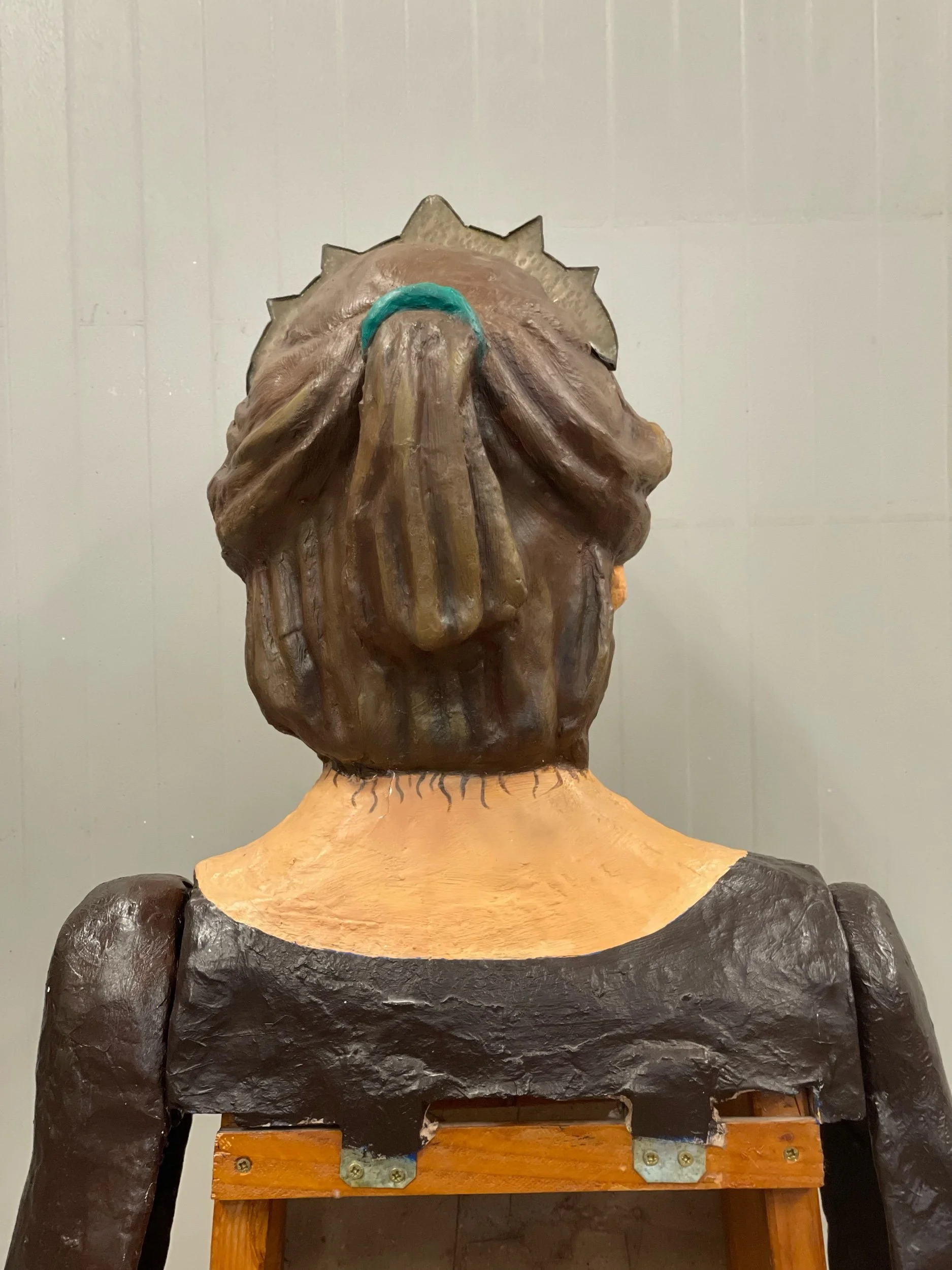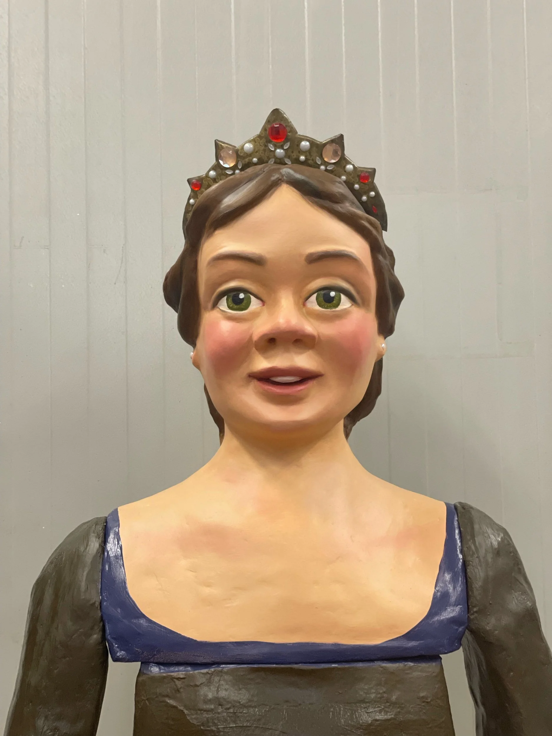 La gegantona Gal·la va venir al taller després d’una desafortunada caiguda. Aprofitant l’ocasió es va optar per anivellar les espatlles, refer part dels braços i fer que el bust fós desmuntable per facilitar-ne el seu trasllat.