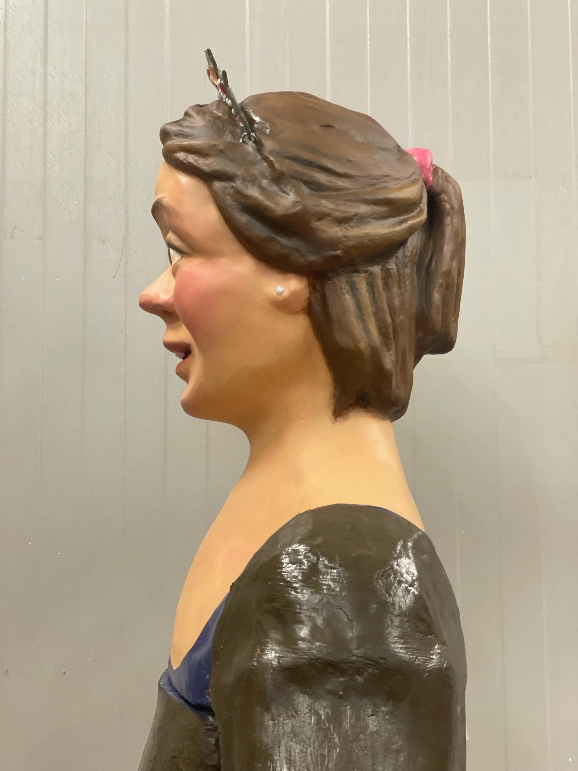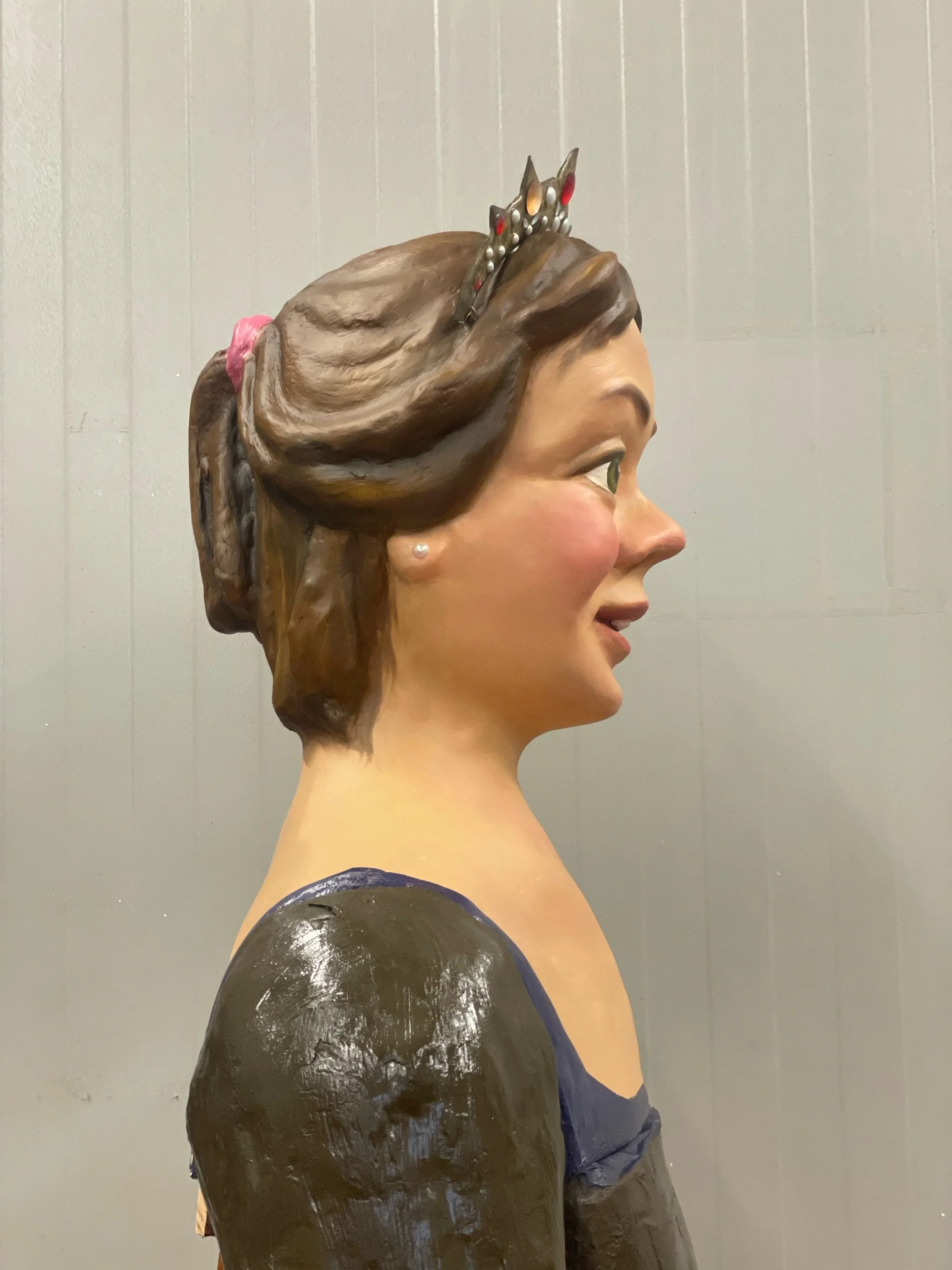 La figura va ser reforçada amb cartró pedra, se li va aplicar nou estuc i es va policromar de nou amb pintura en base a l’oli. Amb el nou pintat es va buscar donar-li més naturalitat a la figura i que aquesta representés més una nena. Es va aprofitar l’ocasió per canviar-li les pedres de la tiara perquè aquestes anéssin a conjunt amb el seu vestuari.