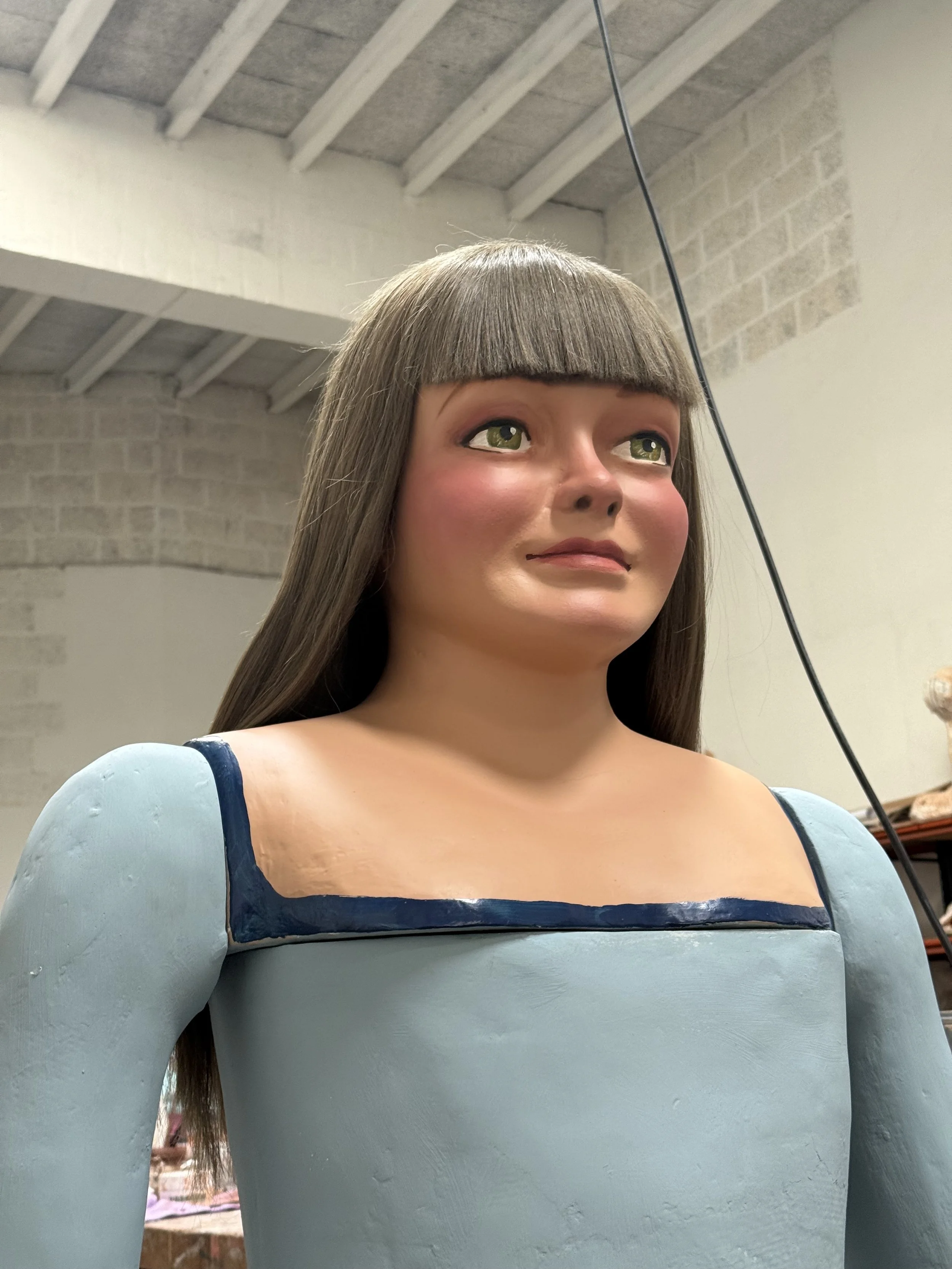A la figura se li ha fet un repàs del cartró a les zones més dèbils i que estaven més toves. També s’ha fet un repàs de les esquerdes i rascades que presentava la figura i, a més, de li ha fet un nou llibre igual a l’original que es pugués desmuntar per facilitar el trasllat de la figura. Finalment s’ha dotat a la figura d’una nova policromia per ressaltar les seves faccions més juvenils.