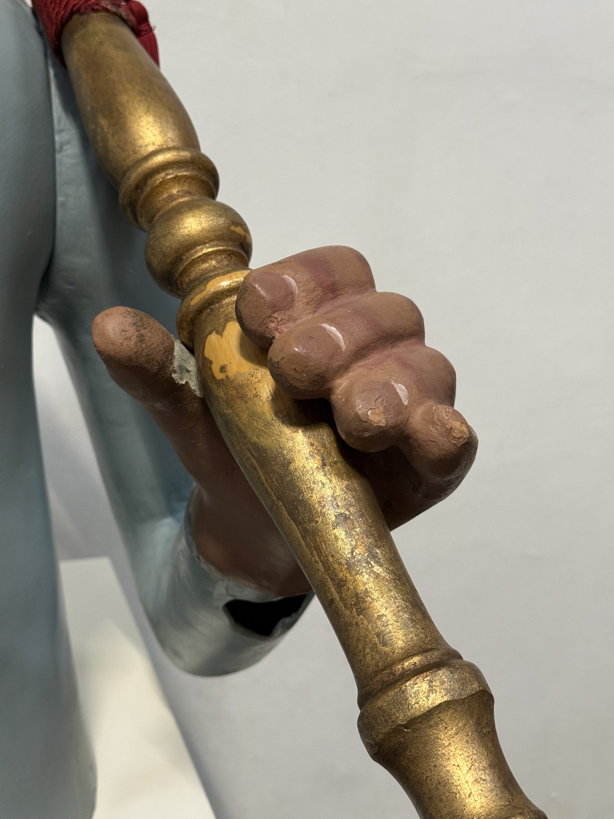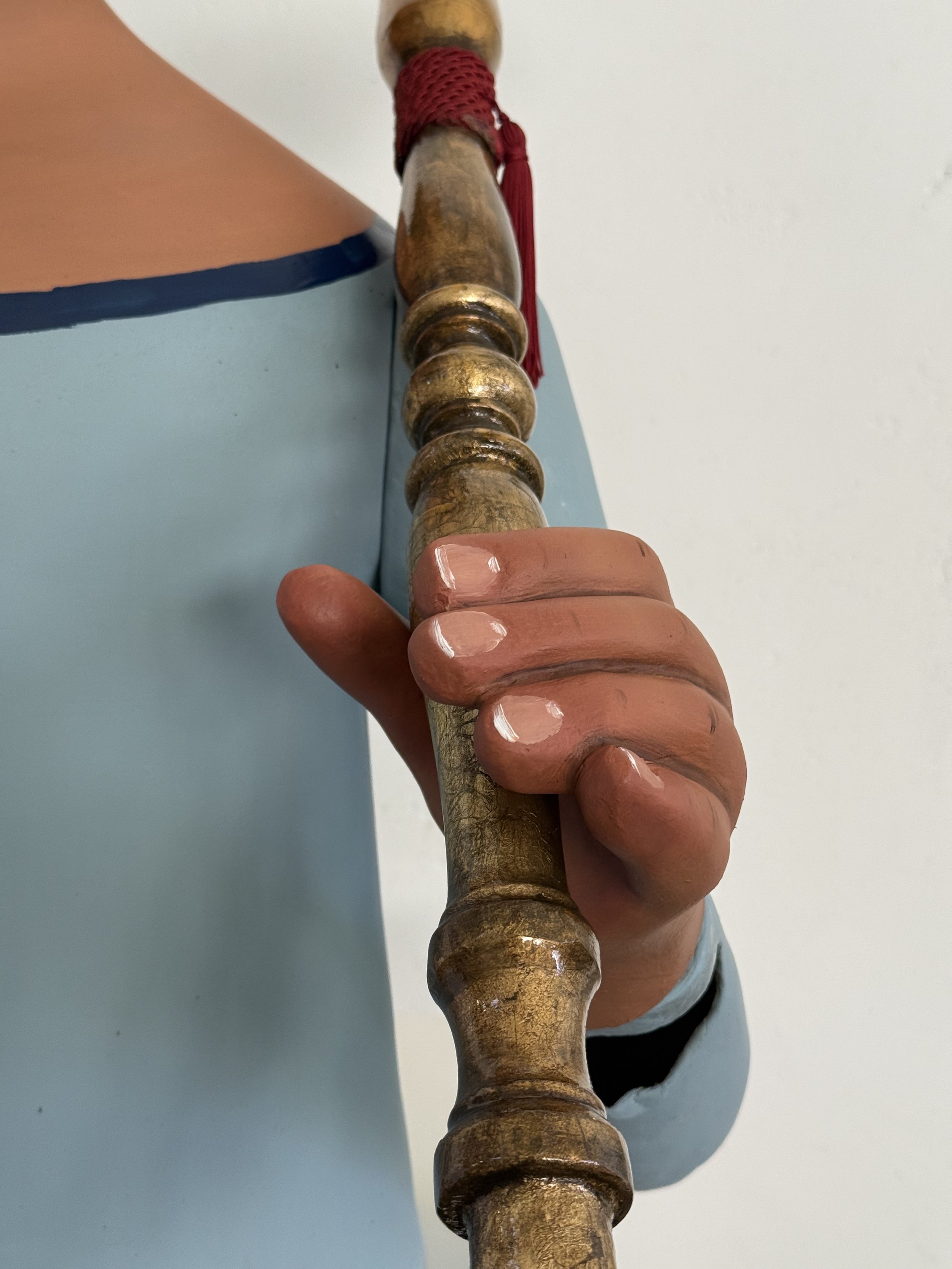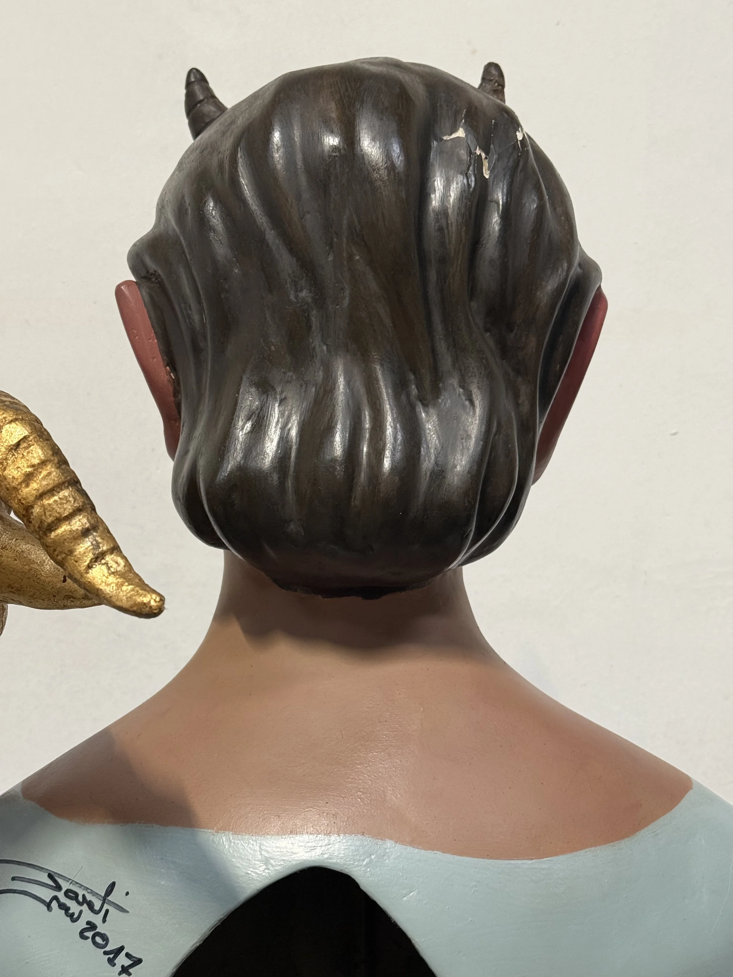 Aquests dies hem treballat amb els gegantons infantils de Martorell, als quals els hi hem reparat algunes parts on el cartró estava debilitat o s’havia trencat. També hem aprofitat per repassar alguns cops i esquerdes que presentaven i finalment els hi hem fet una nova policromia perquè tornéssin a lluïr com nous!