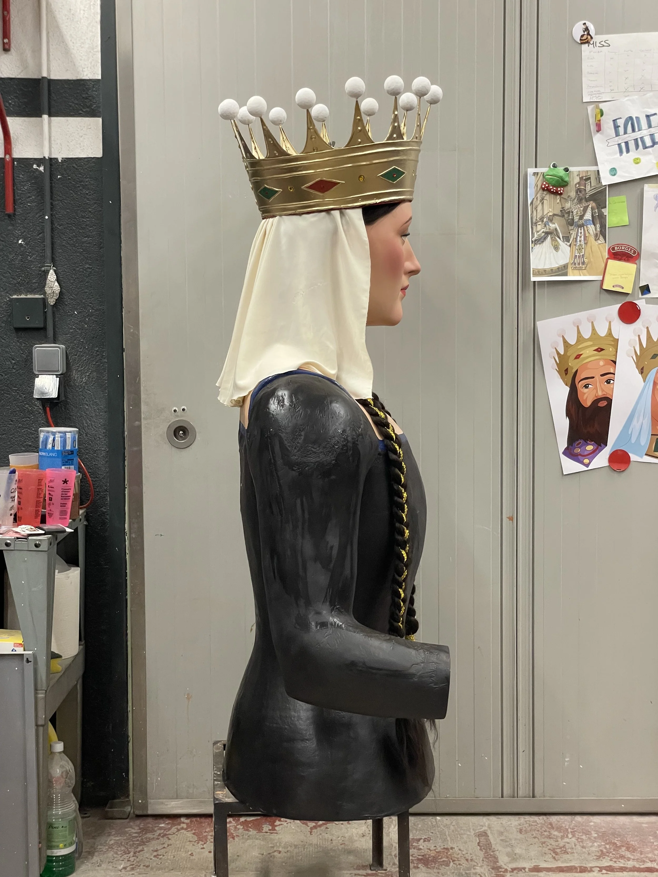 També s’ha aprofitat l’ocasió per restaurar l’espasa del gegant vell ja que tenia una part del mànec trencada i així s’han pogut igualar les dues espases dels gegants, a més d’elaborar un nou casc per la corona del gegant que s’ha forrat de vellut i s’han fet unes noves arrecades per la geganta ja que les que duia estaven trencades.
