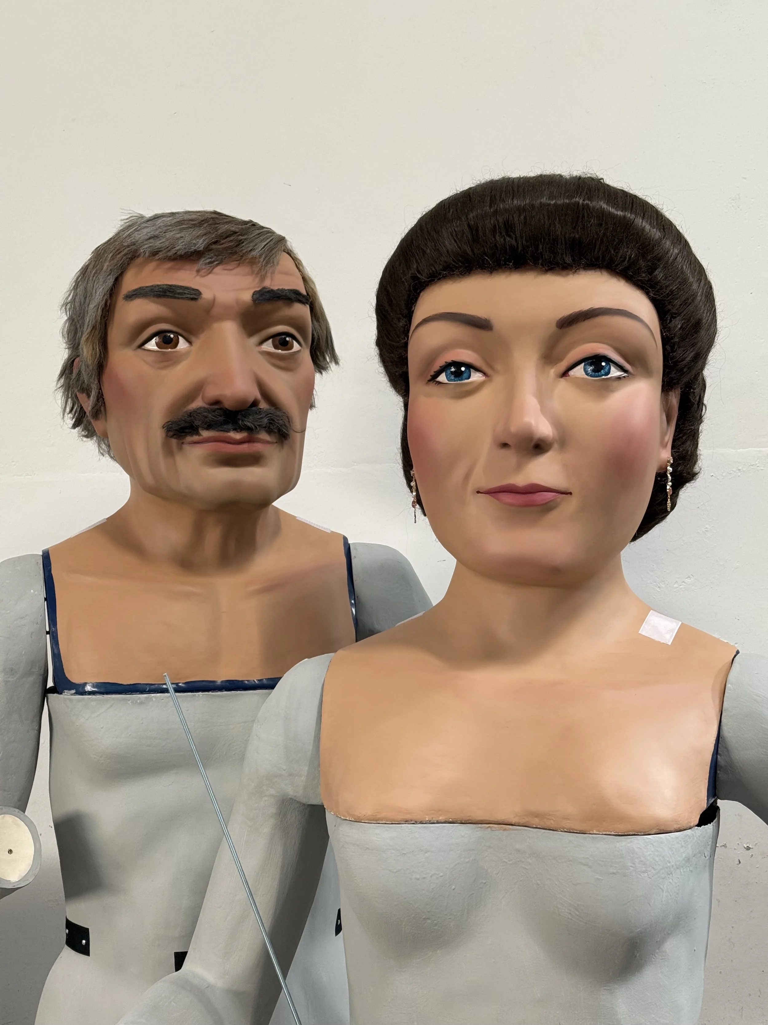 En Martí i la Remei, els gegants vells d’Arenys de Munt, van passar pel taller per sotmetre’s a un estudi i revisió a fons de les figures ja que enguany celebren el seu 40è aniversari i volien lluïr les seves millors gales.