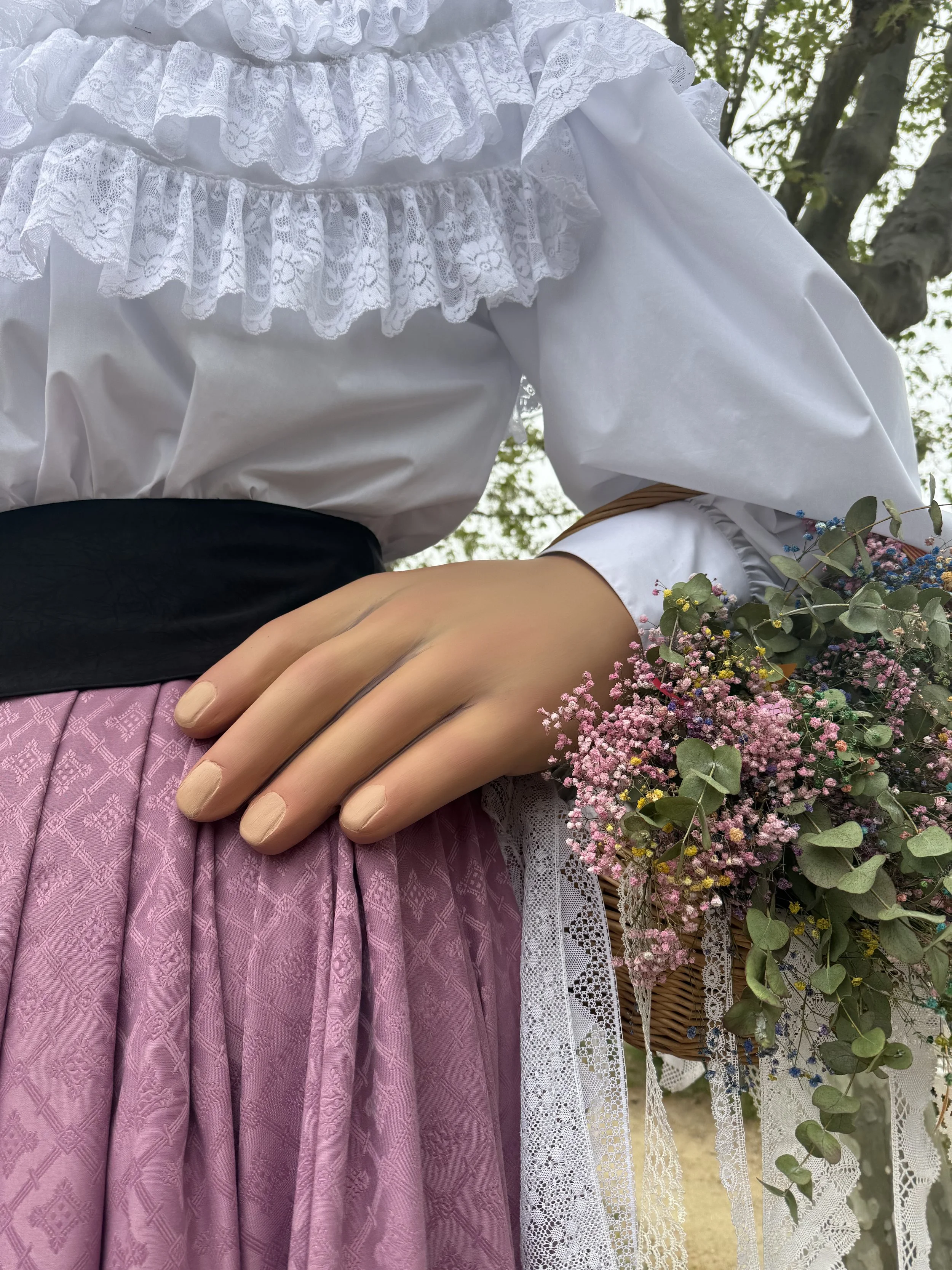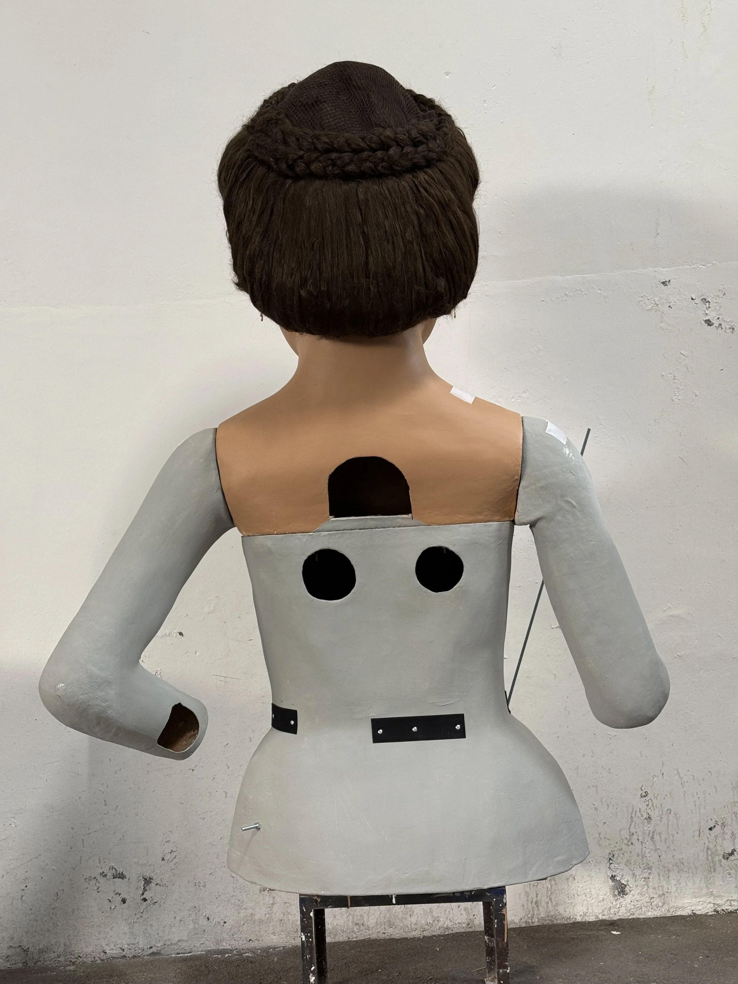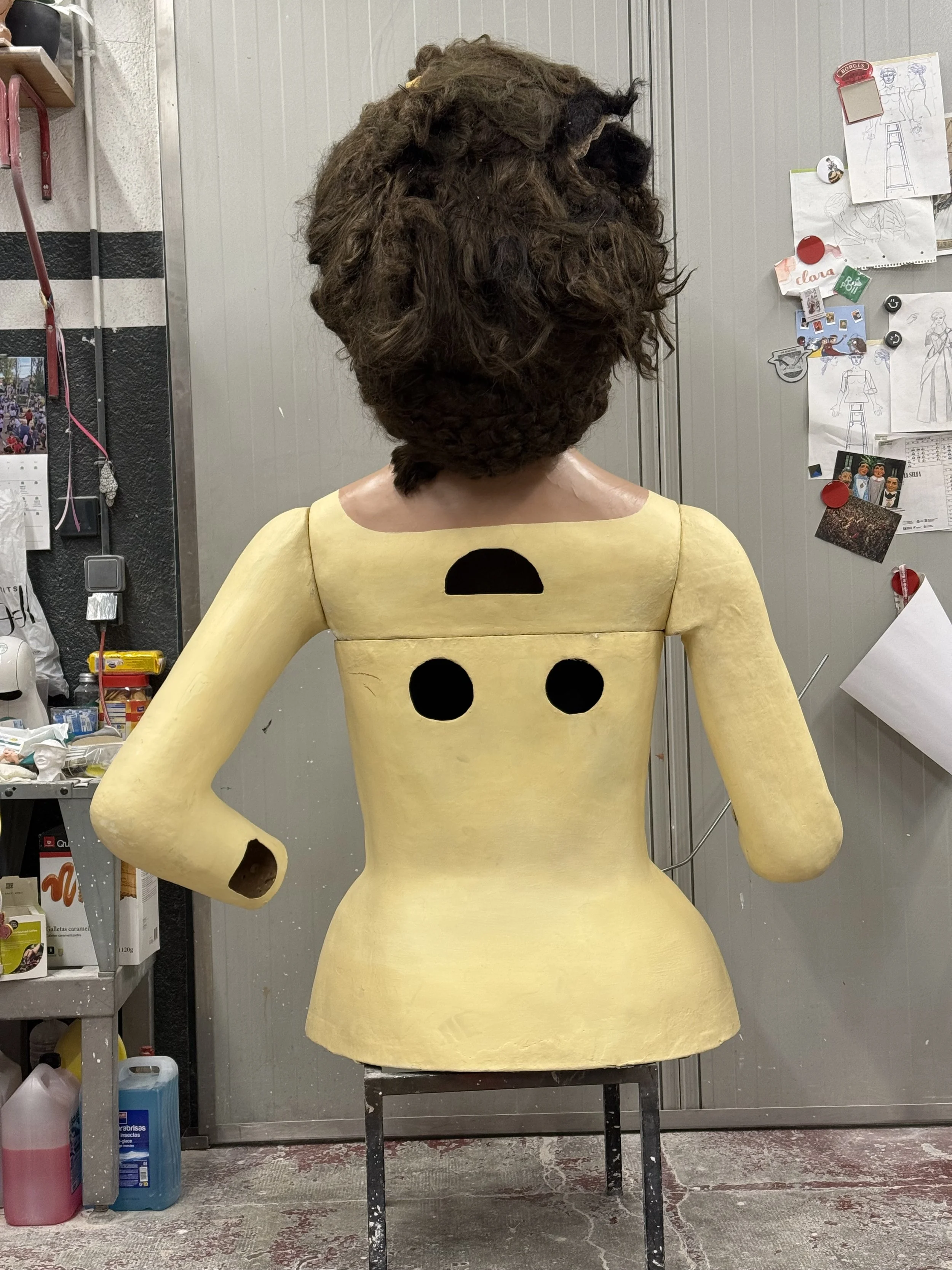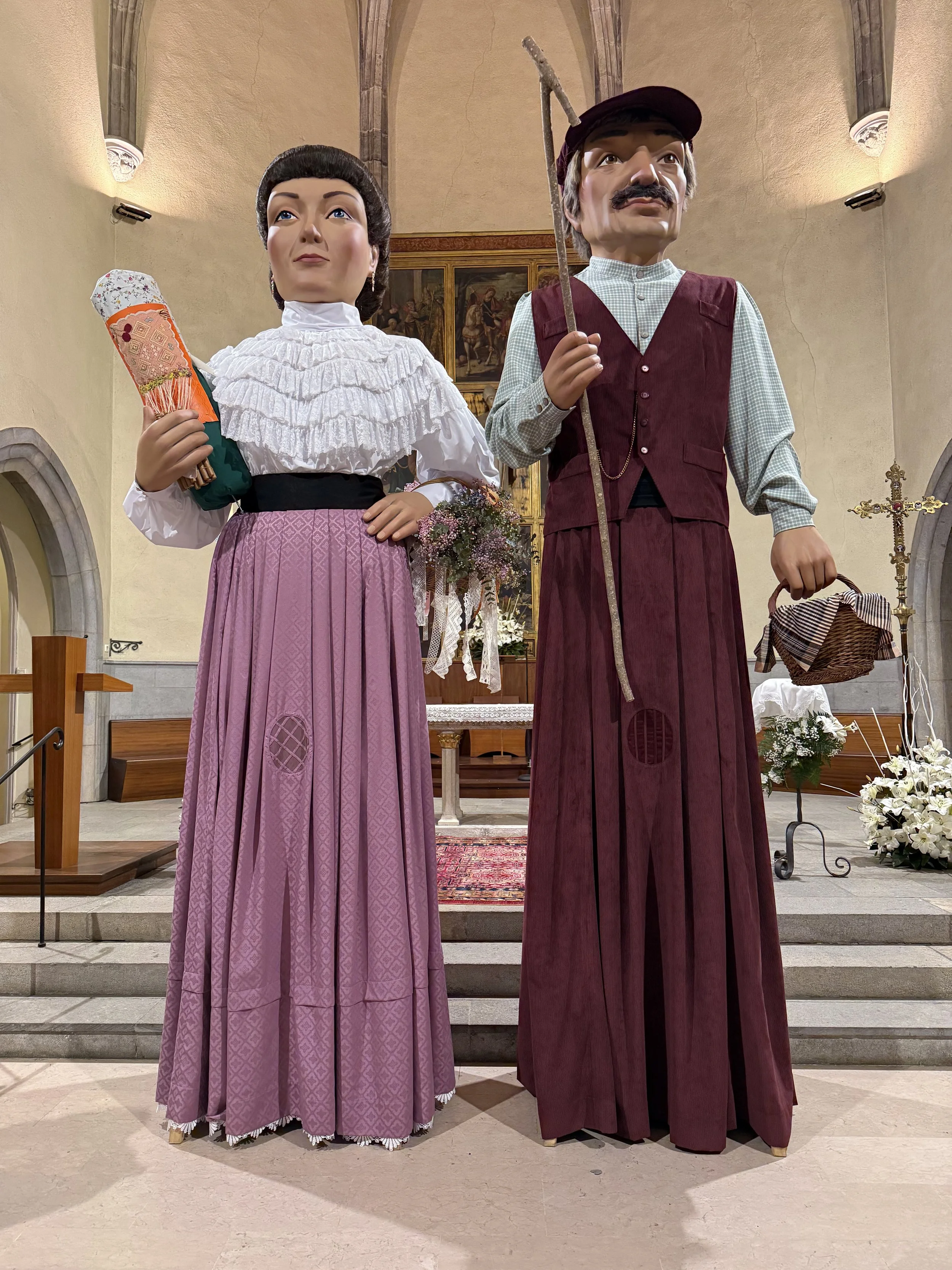 En la segona fase de l’intervenció, se’ls ha sotmès a una reparació més acotada, eliminant materials invasius, canvi de fust.es de les juntes per millorar l’anclatge del es mans i braços, se’ls ha aplicat nou estuc i policromia per accentuar les seves faccions i finalment s’han renovat els complements com pot ser el coixí de puntes i el cistell del gegant.