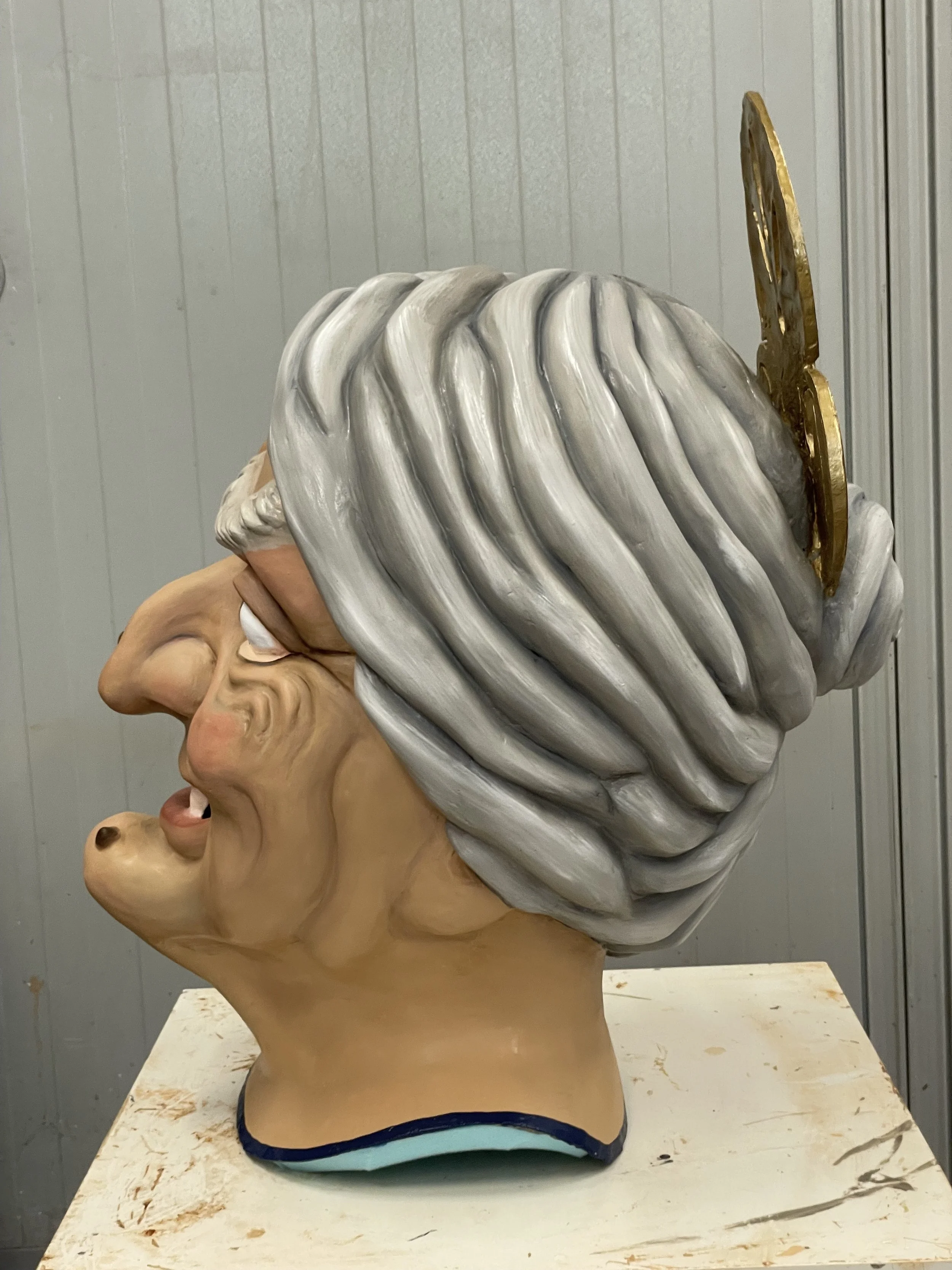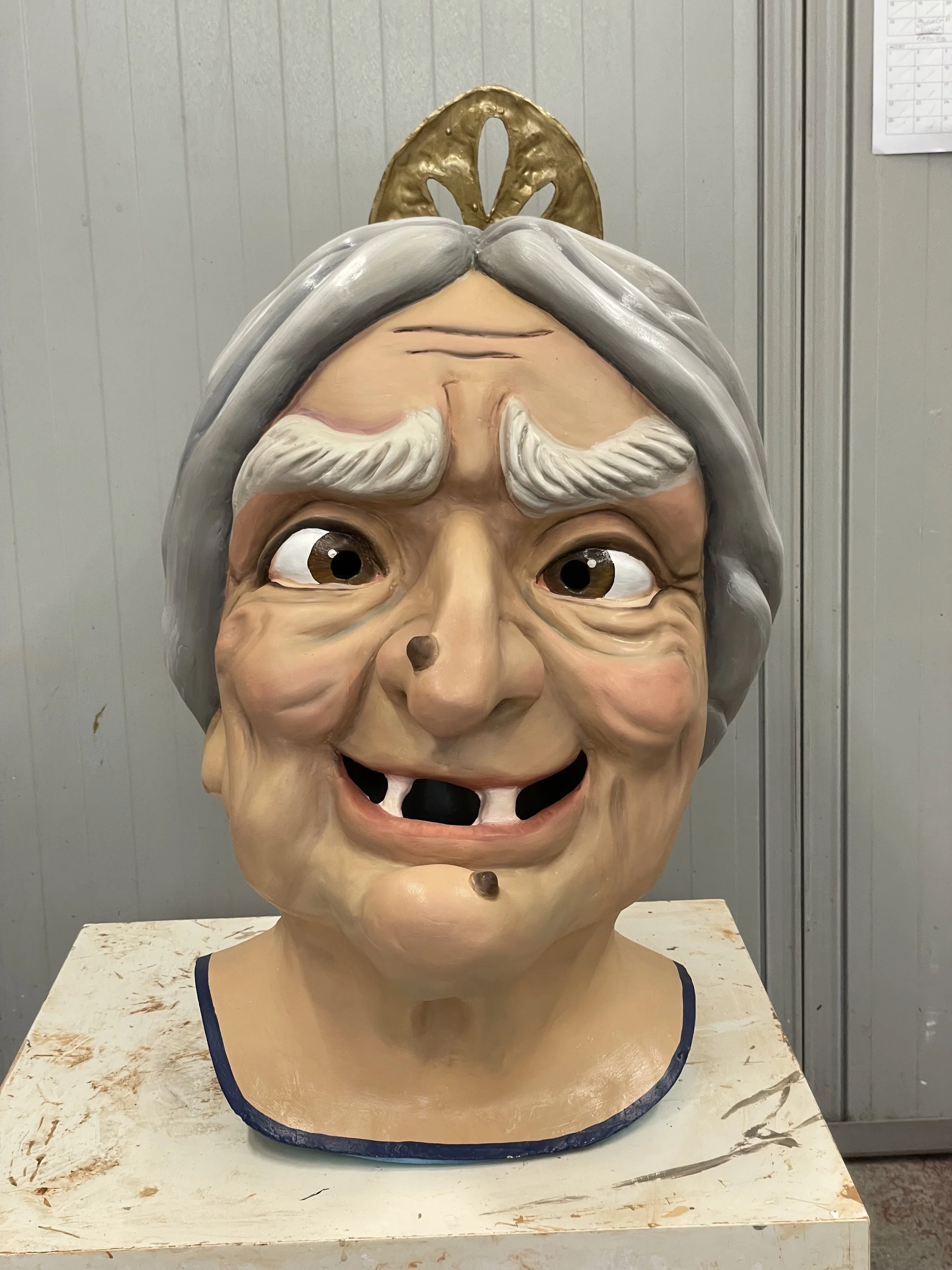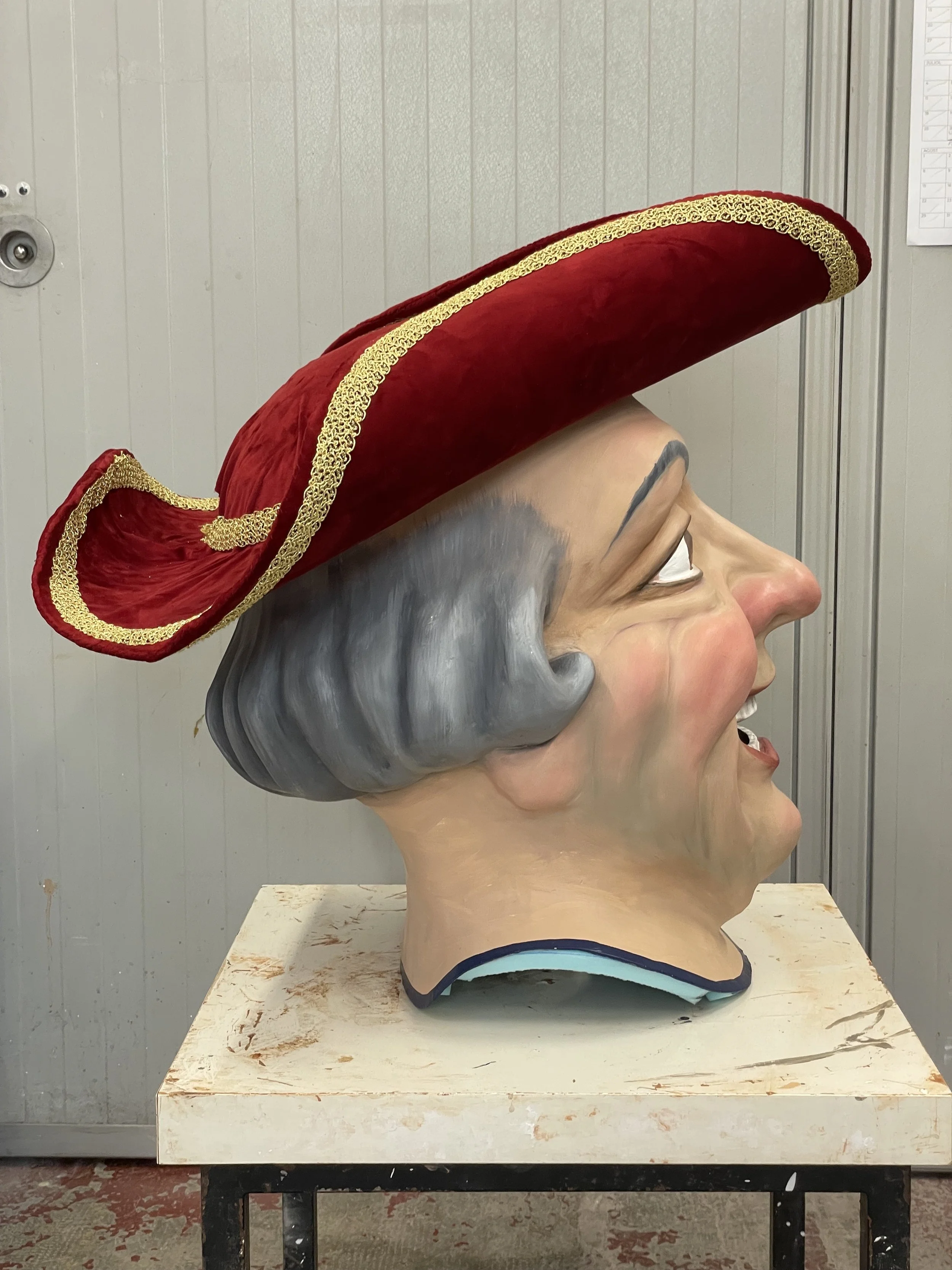 S’ha millorat el barret en forma de tricorni en les parts que estaven trencades i s’ha tapissat amb vellut granat i passamaneria, igual que s’ha creat de zero el barret de copa, també tapissat amb vellut negre, s’ha confeccionat una nova gorra pel capgròs del nen i també s’ha creat la “peineta” de l’àvia, que té un aire més valencià.